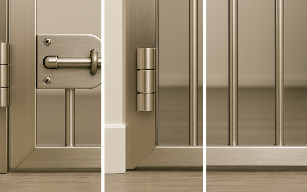 การเลือกประตูกรงที่ดีไม่ได้ขึ้นอยู่กับวัสดุอย่างเดียว แต่ยังรวมถึงการออกแบบและส่วนประกอบย่อยต่าง ๆ ที่สร้างความแตกต่างด้านความปลอดภัยและการใช้งาน