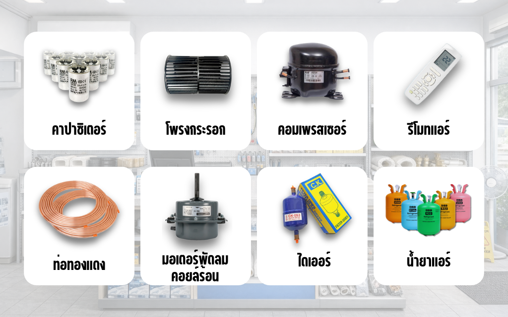 เมื่อคุณรู้สาเหตุแล้วว่าเสียงดังเกิดจากอะไร ขั้นตอนต่อไปคือการซ่อมบำรุงด้วย “อะไหล่ที่ได้มาตรฐาน” เพราะการเลือกใช้ชิ้นส่วนที่ไม่มีคุณภาพ อาจทำให้ปัญหาเดิมกลับมาอีกครั้งในเวลาอันสั้น หรืออาจส่งผลกระทบต่อระบบส่วนอื่นๆ ของแอร์คุณได้