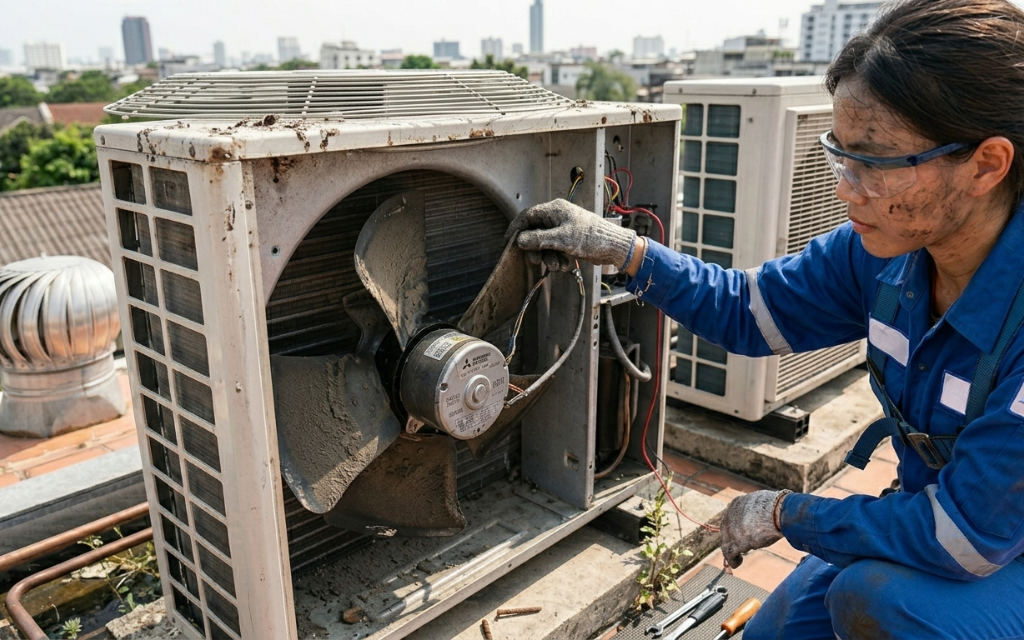 3. ตรวจเช็กระบบใบพัดและมอเตอร์: หัวใจของการระบายลม